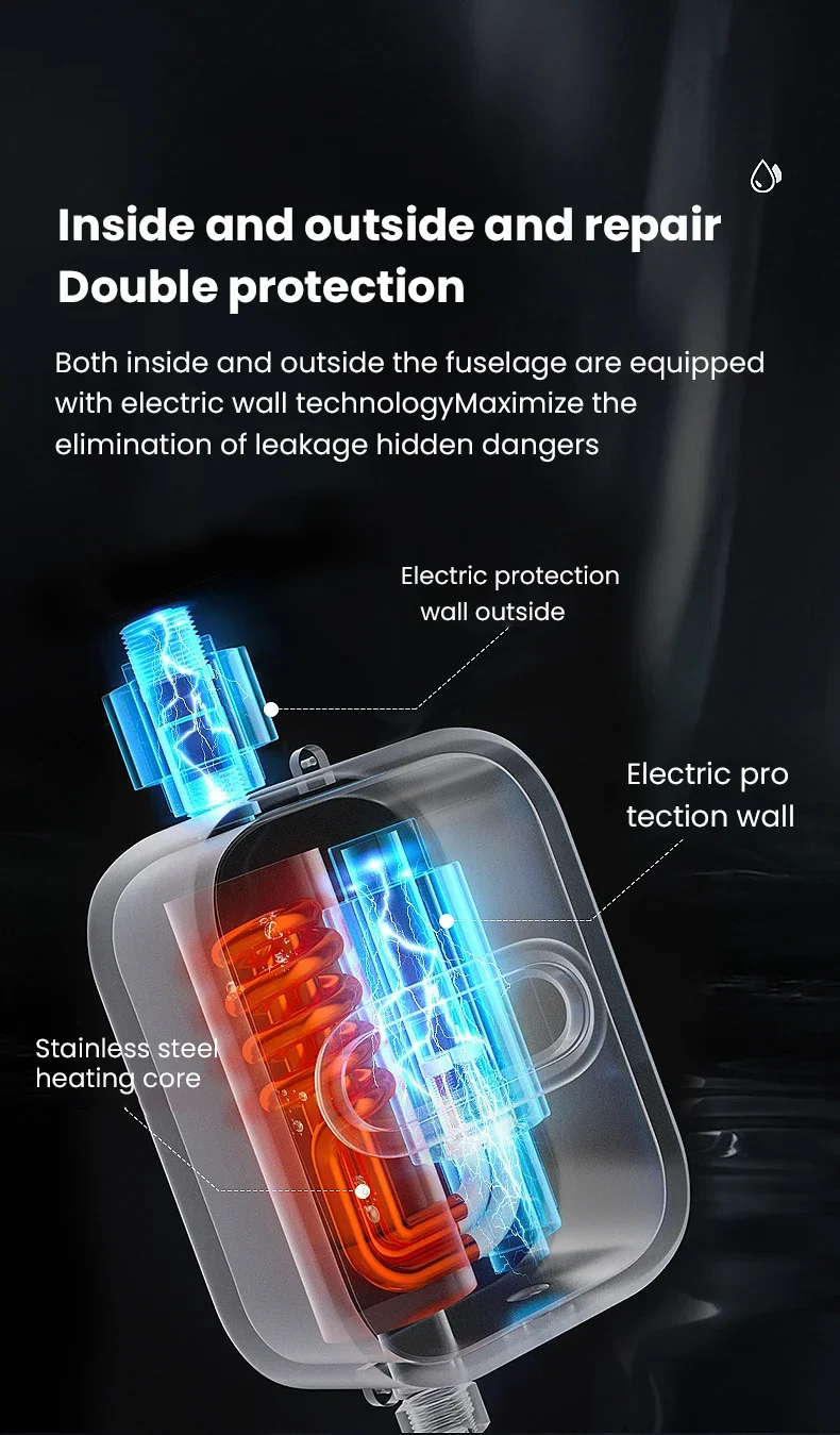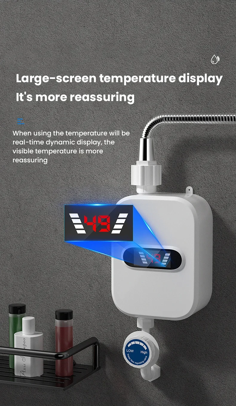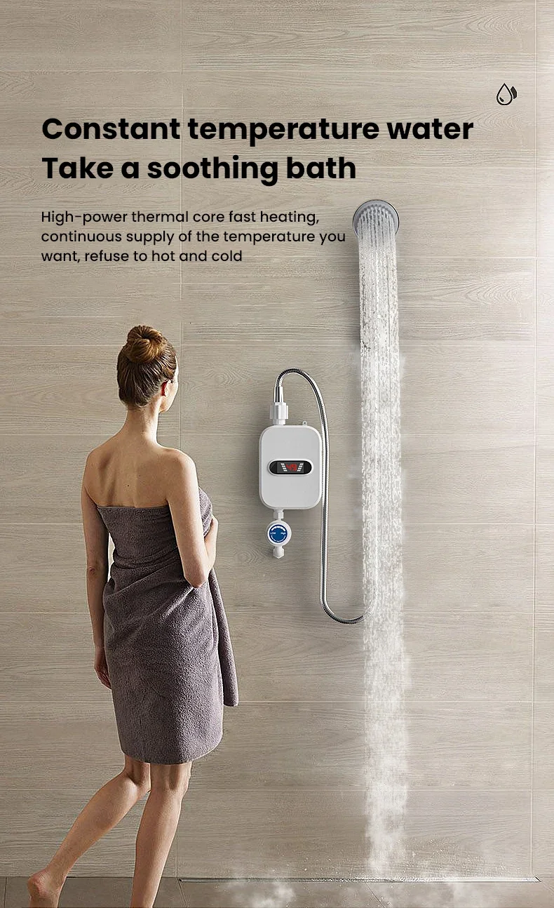 220V Instant Water Heater Shower EU Plug Hot Water Heater 3500W Digital Display For Country House Cottage Hotel